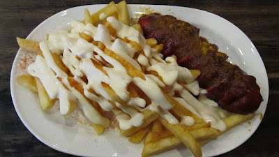 Die Wurst selbst hätte evtl. noch ein wenig länger gekonnt, aber sowohl Soßengeschmack (leicht süß und scharf) als auch Menge haben überzeugt.