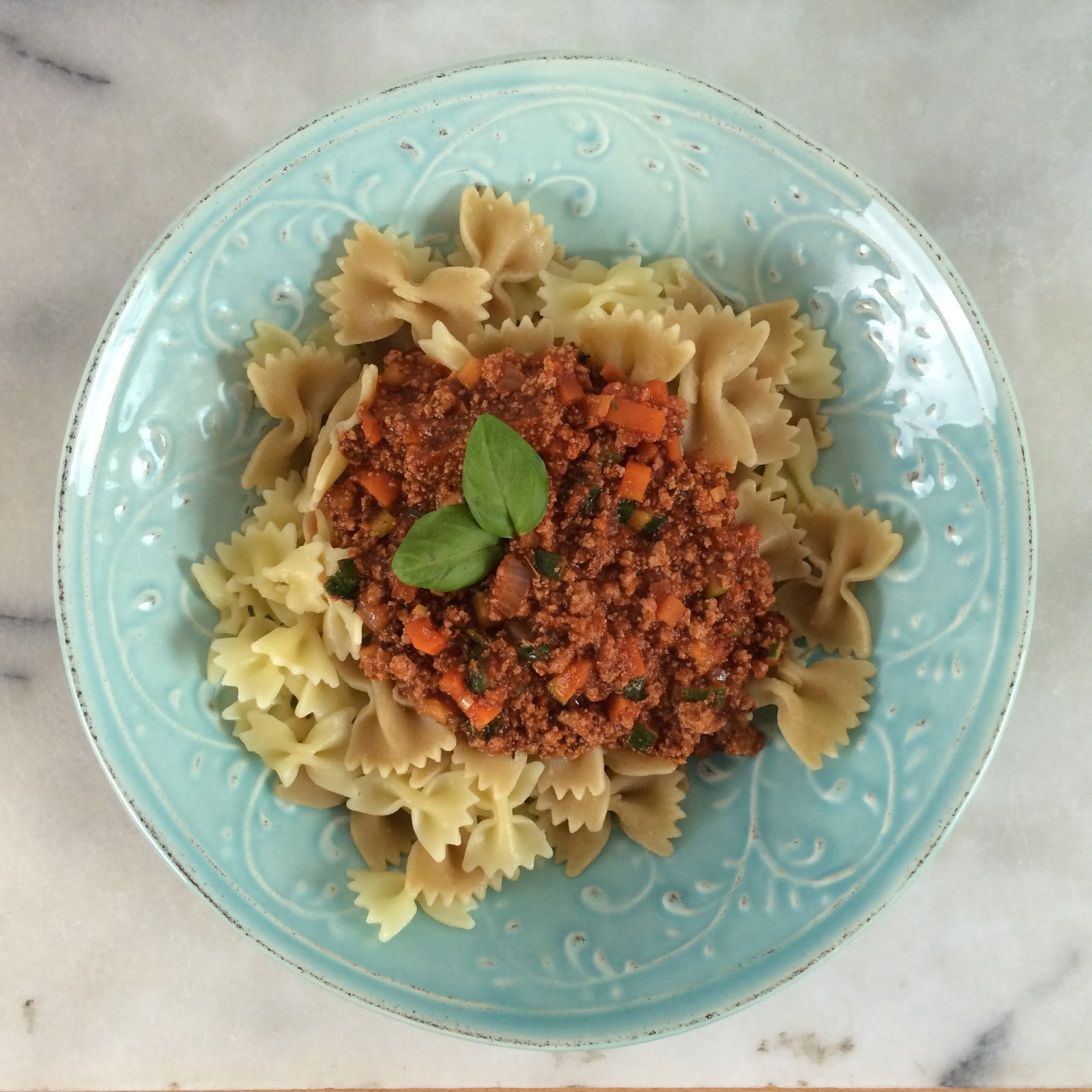 Meine „normale“ Bologese bestand immer schön aus Hackfleisch (gemischt) und passierten Tomaten. In eine echte Bolognese gehört noch weitaus mehr und die muss auch ordentlich lang einkochen. Somit ist auch die vegane Alternative keine „echte“ Bolognese, aber durchaus gesund und richtig lecker.